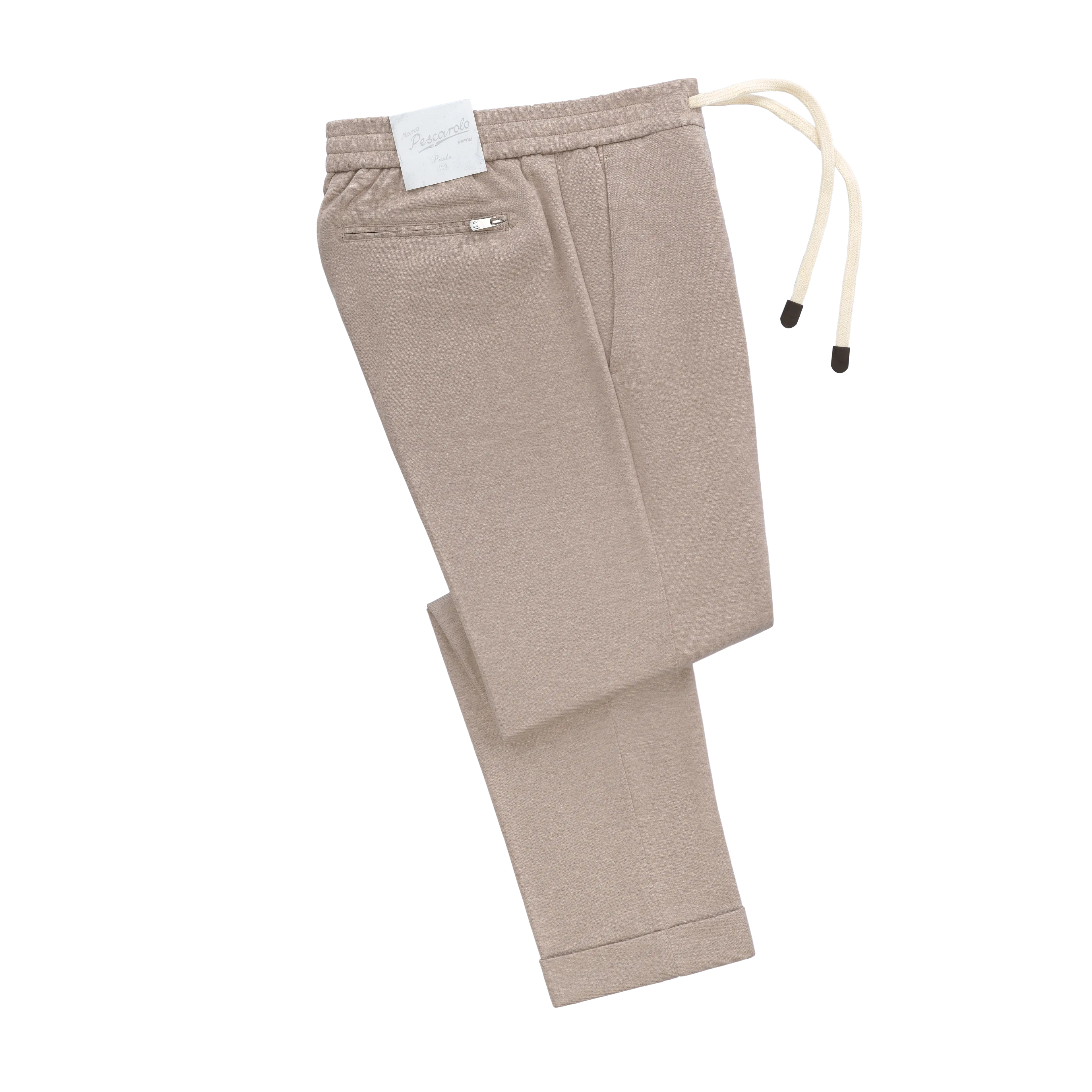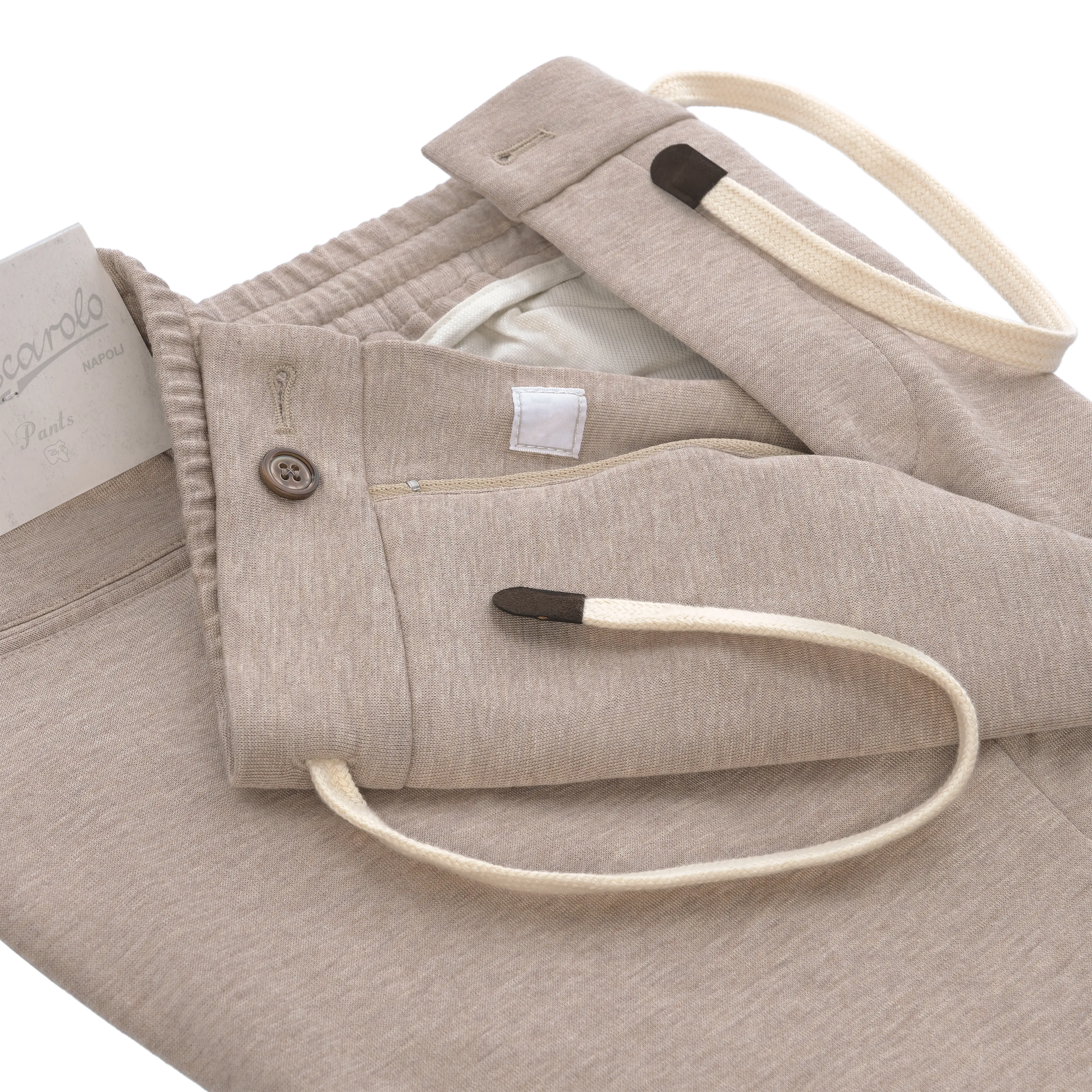 Cotton-Silk Blend Drawstring Trousers in Beige