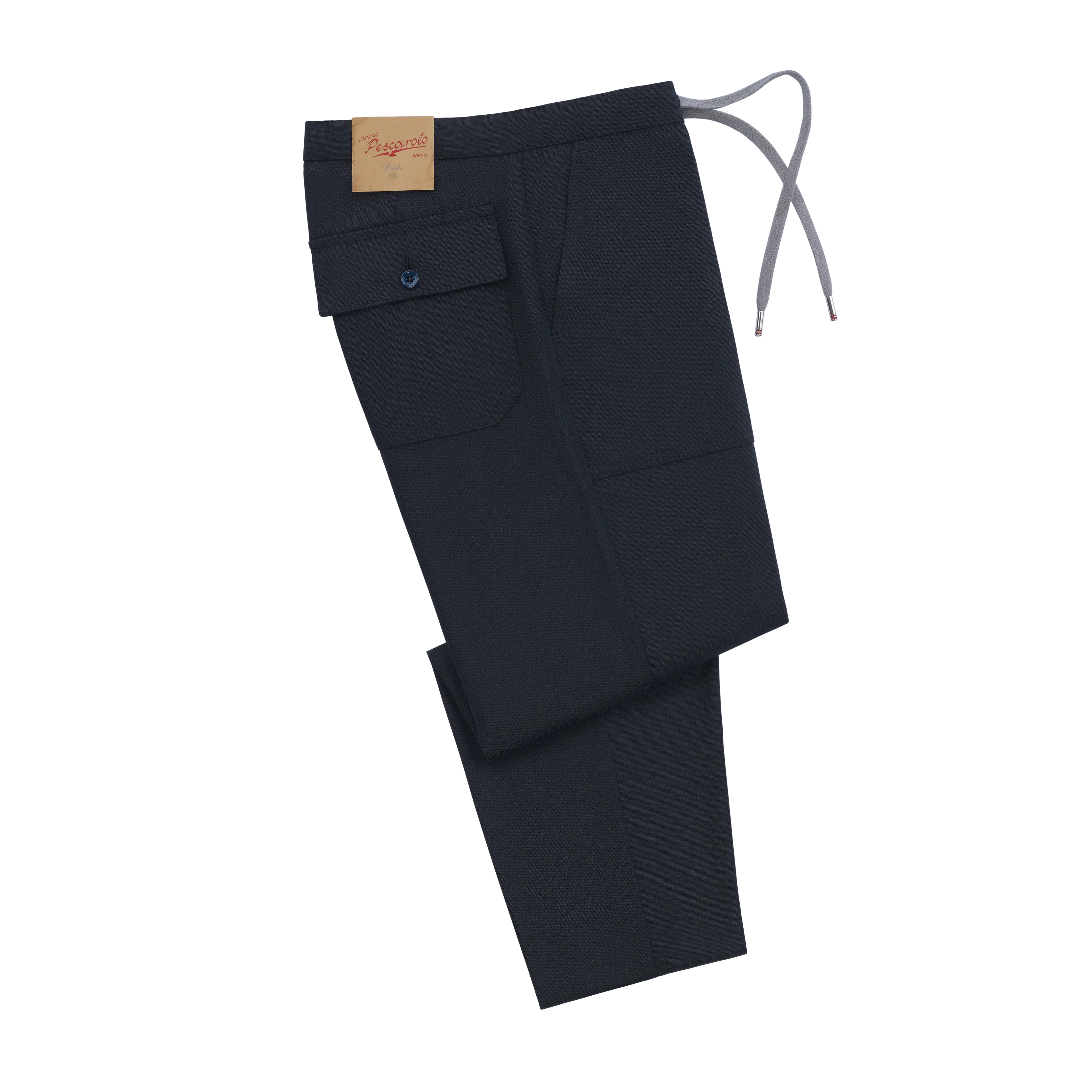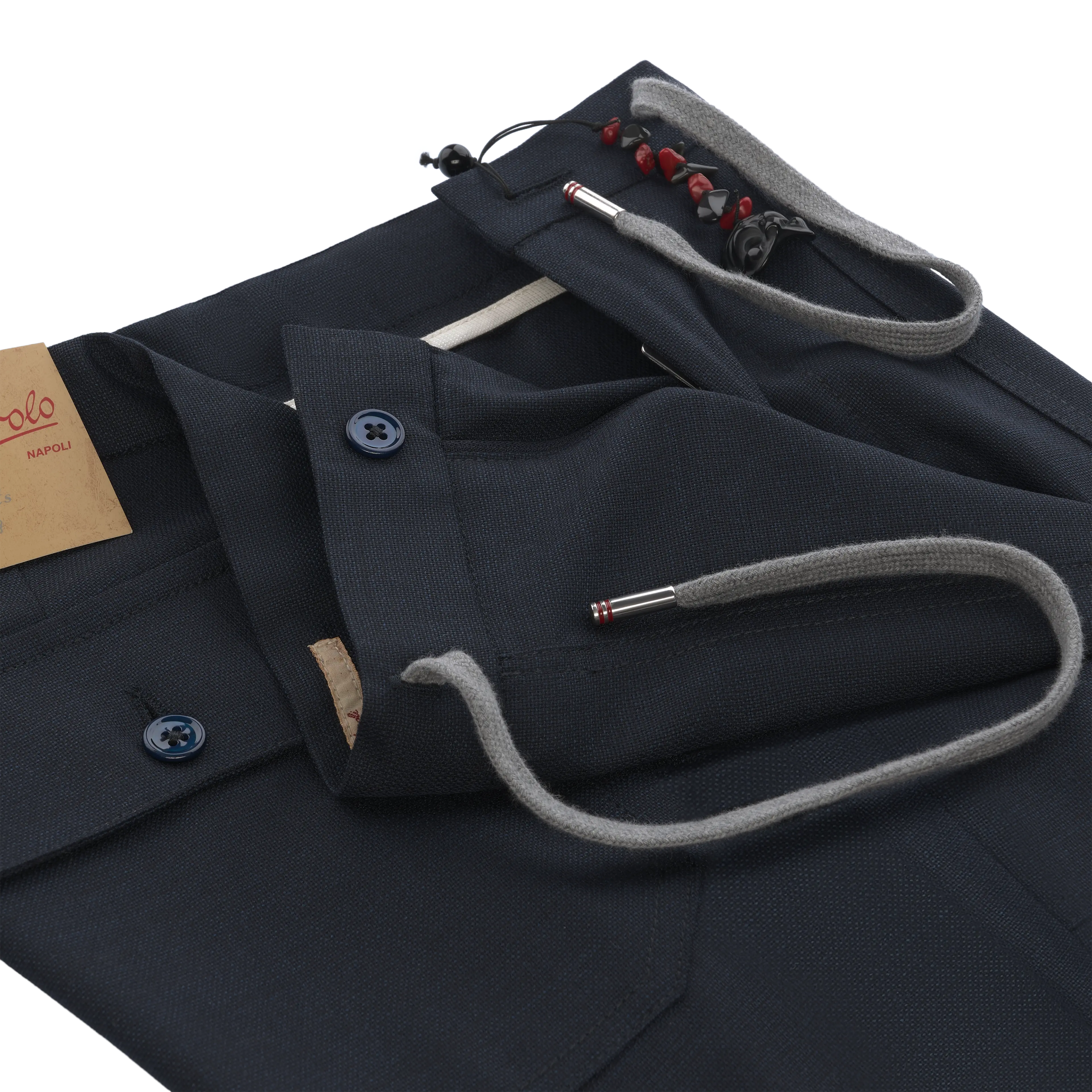 Virgin Wool Drawstring Trousers in Dark Blue Melange