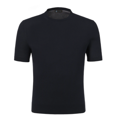 Baumwoll-Rundhalspullover in Dunkelblau
