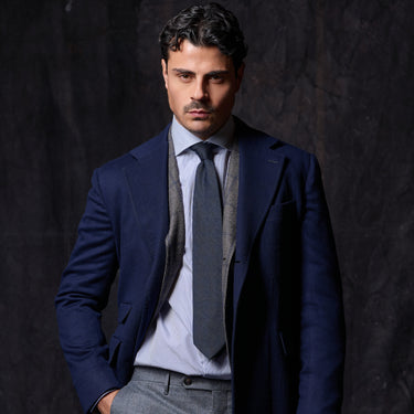 Einreihiger Cappotti-Mantel aus einer Woll-Kaschmir-Mischung in Blau. Exklusiv für Sartale hergestellt