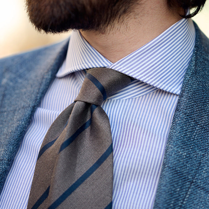 Der Sartale Store bietet eine große Auswahl an Emanuele Maffeis-Hemden in vielen verschiedenen Größen: einfarbige Modelle, Nadelstreifen-, Denim- und Karomuster – die Muster variieren von der Größe eines winzigen Quadrats in einem vierlinierten Notizbuch bis zur Größe eines Fensterrahmens. Sie können auch aus verschiedenen Kragenvarianten wählen – von klassisch bis Cutaway.