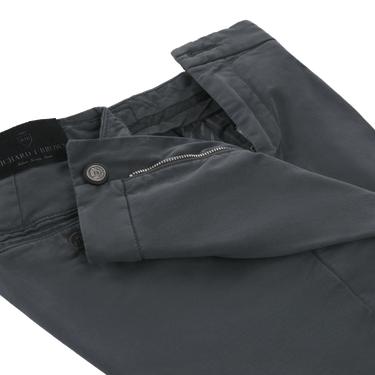 Schmal geschnittene Hose aus Stretch-Baumwolle mit Schnallenversteller in Metallic-Grau