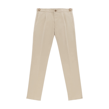 Schmal geschnittene Hose aus Stretch-Baumwolle mit Schnallen-Taillenversteller in Creme