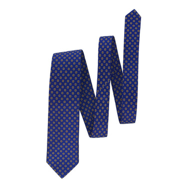 Gewebte, mit Seide gefütterte Krawatte mit blauem Blumenmuster