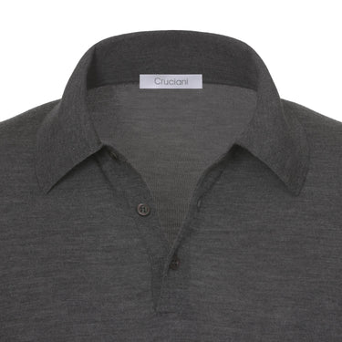 Wool Sweater Polo Shirt in Dark Grey Melange