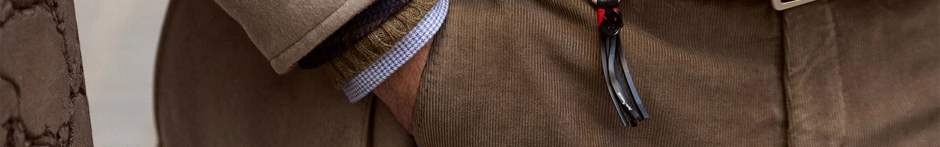 In the constant search for excellence, Marco Pescarolo and Anna De Matteis choose the finest of the many fabrics on the market. They give preference to Italian manufacturers who buy fabrics from fine wool to pure cashmere. The brand also uses cotton fabrics with an elastic effect: from tricotine to gabardine and super-lightweight 14 micron fabrics. The search for innovative materials, unusual patterns and textures, from micro-patterns to unusual prints, allows the creators of the brand to rethink the idea of men's trousers, to make them modern, but not devoid of comfort for the sake of fashion. The production process of creating stylish trousers includes both machine and manual operations.