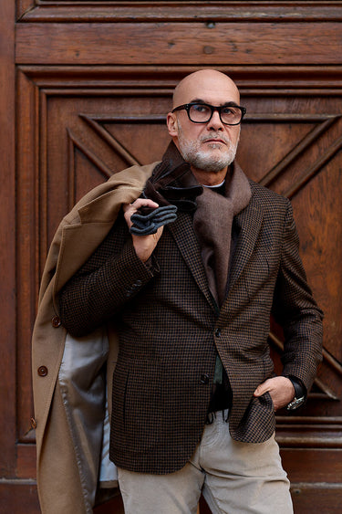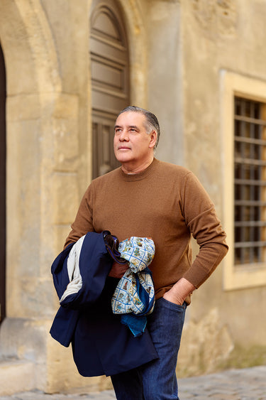 Layers of cashmere and rustic charm, shaped by timeless Italian elegance