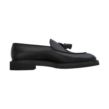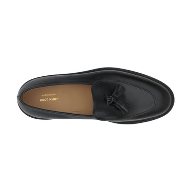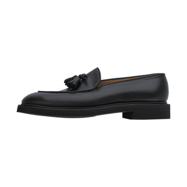 "Edmond" Leather Tassel Loafer with Hand-Stitched Apron in Black