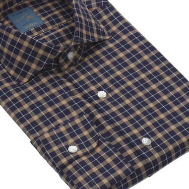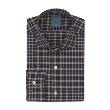 "Dandy Life" Plaid Cotton Shirt in Dark Blue and Ochre