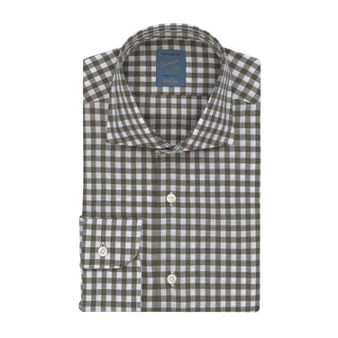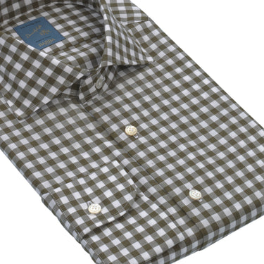 "Dandy Life" Gingham-Check Cotton Shirt in Olive Green and White