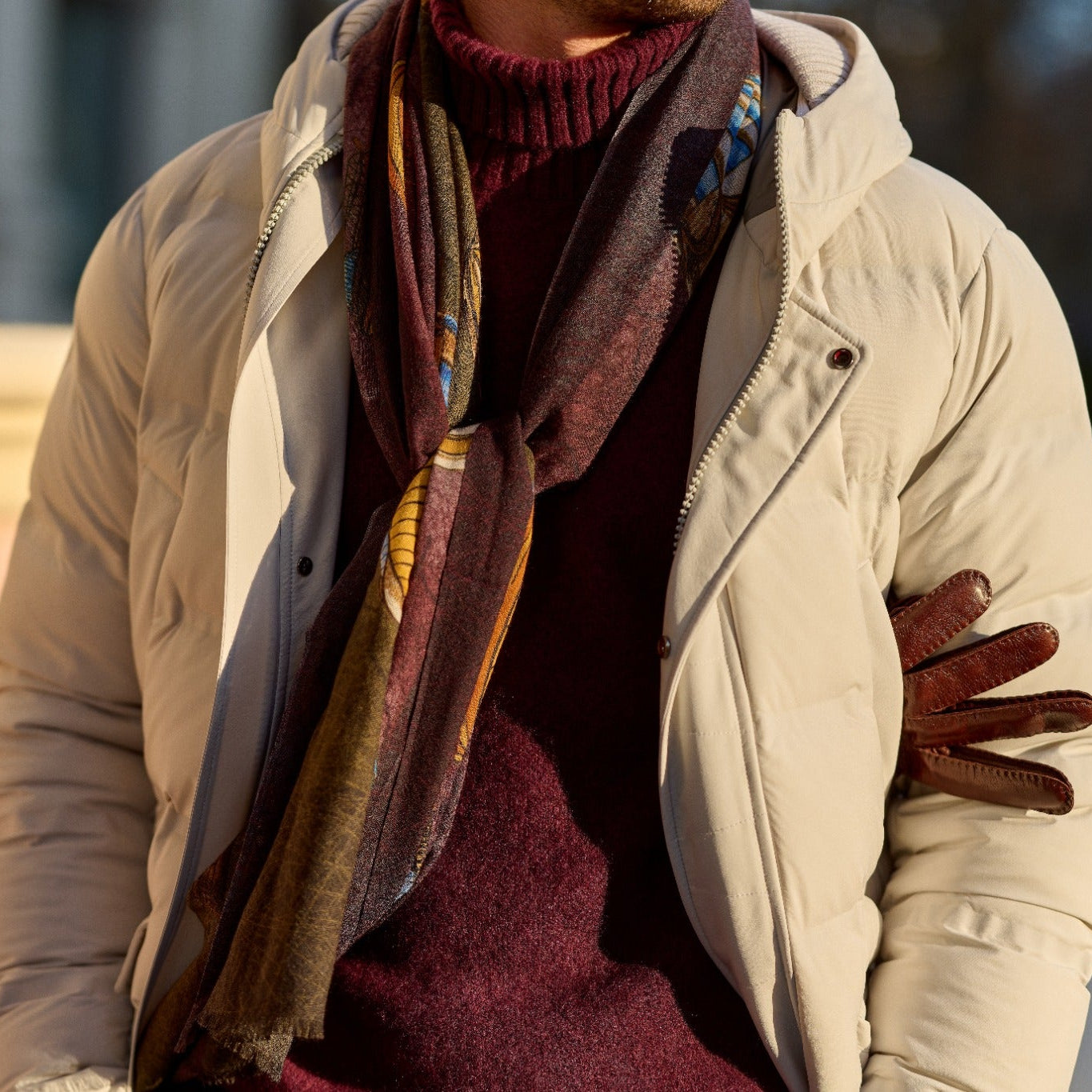 Fringed Cashmere Scarf with Ballon Print in Burgundy