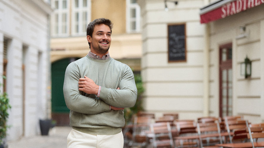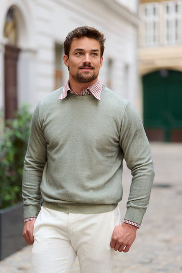 Cashmere Crew-Neck Pullover in Military Green