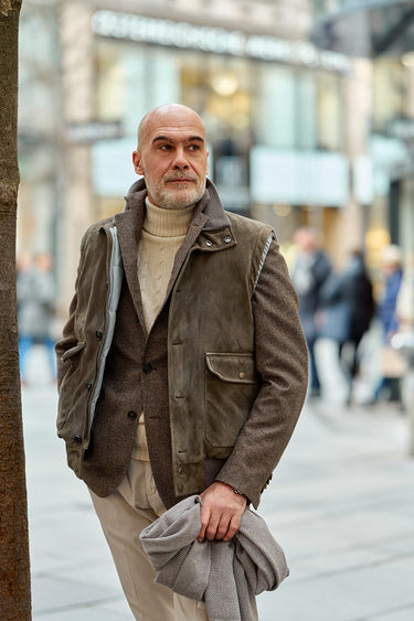 Single-Breasted Wool Jacket in Brown and White. Exclusively Made for Sartale