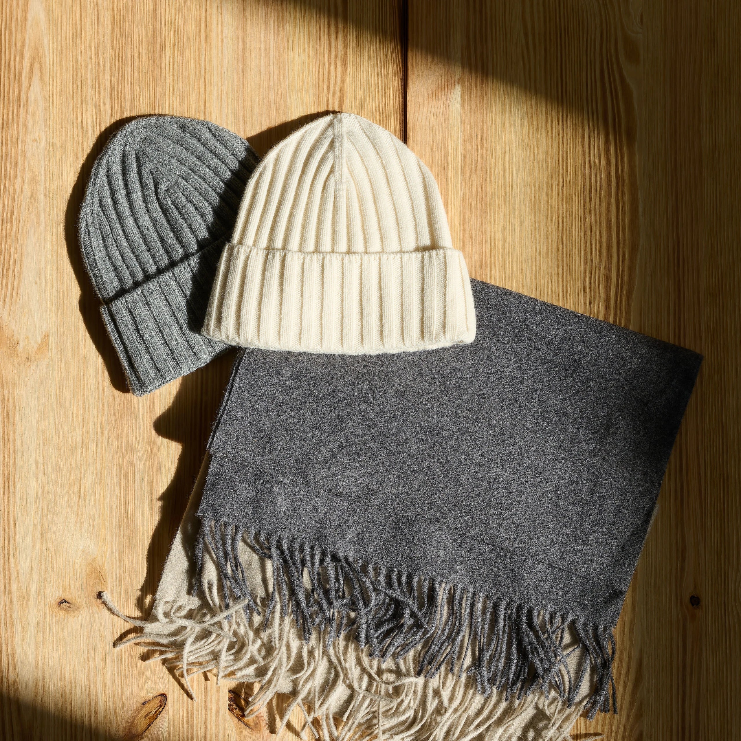 Ribbed Cashmere Hat in Grey Melange