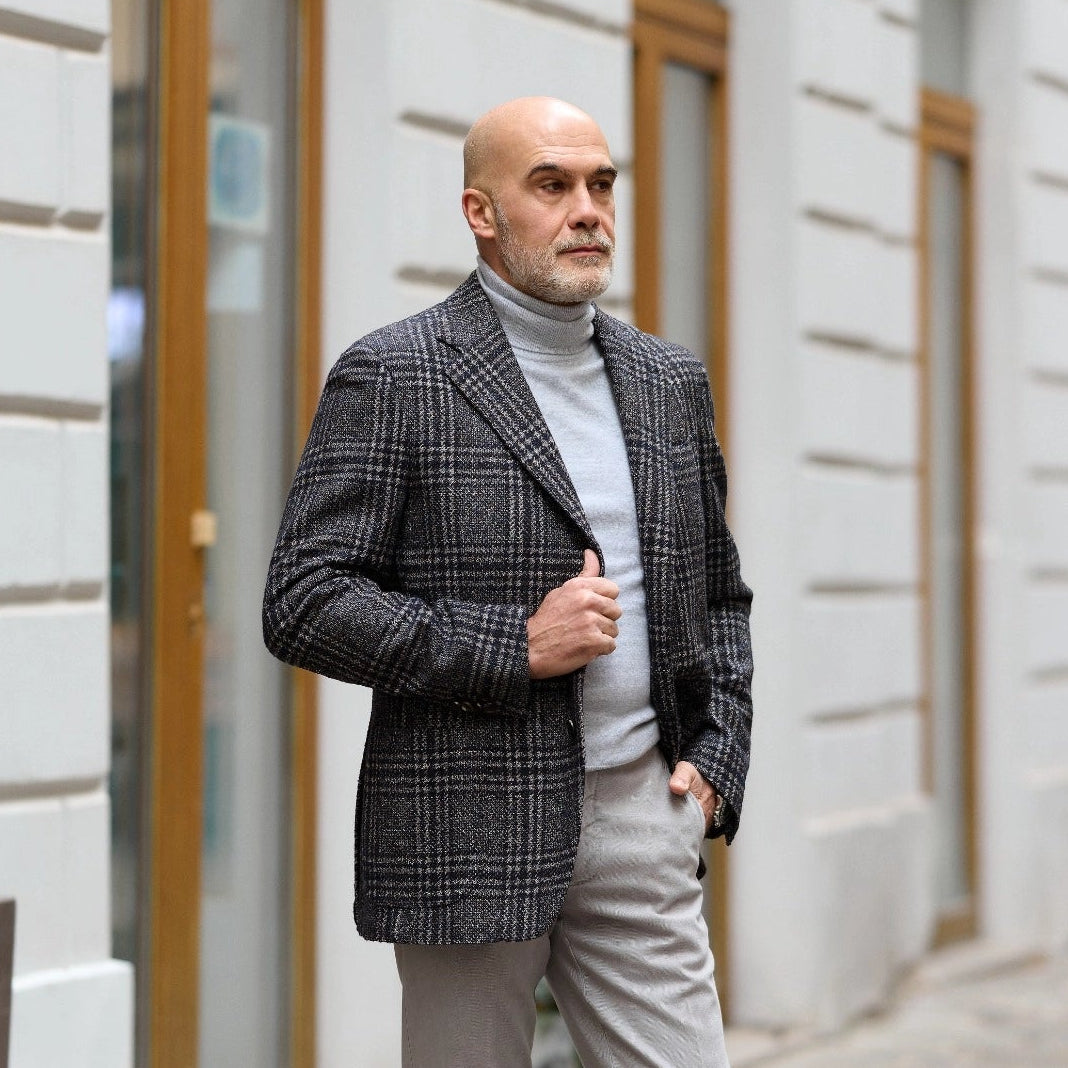 Single-Breasted Wool Jacket in Dark Blue and Brown. Exclusively Made for Sartale