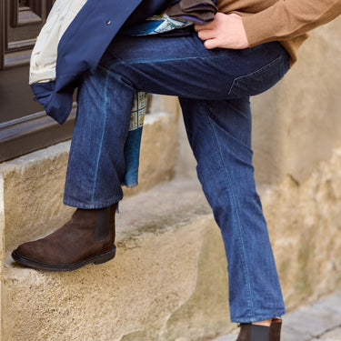 Denim par excellence. The selvedge in the brand's signature colour, copper, is made exclusively for Richard J. Brown. The fabric is meticulously hand cut, making the garment unique and special.