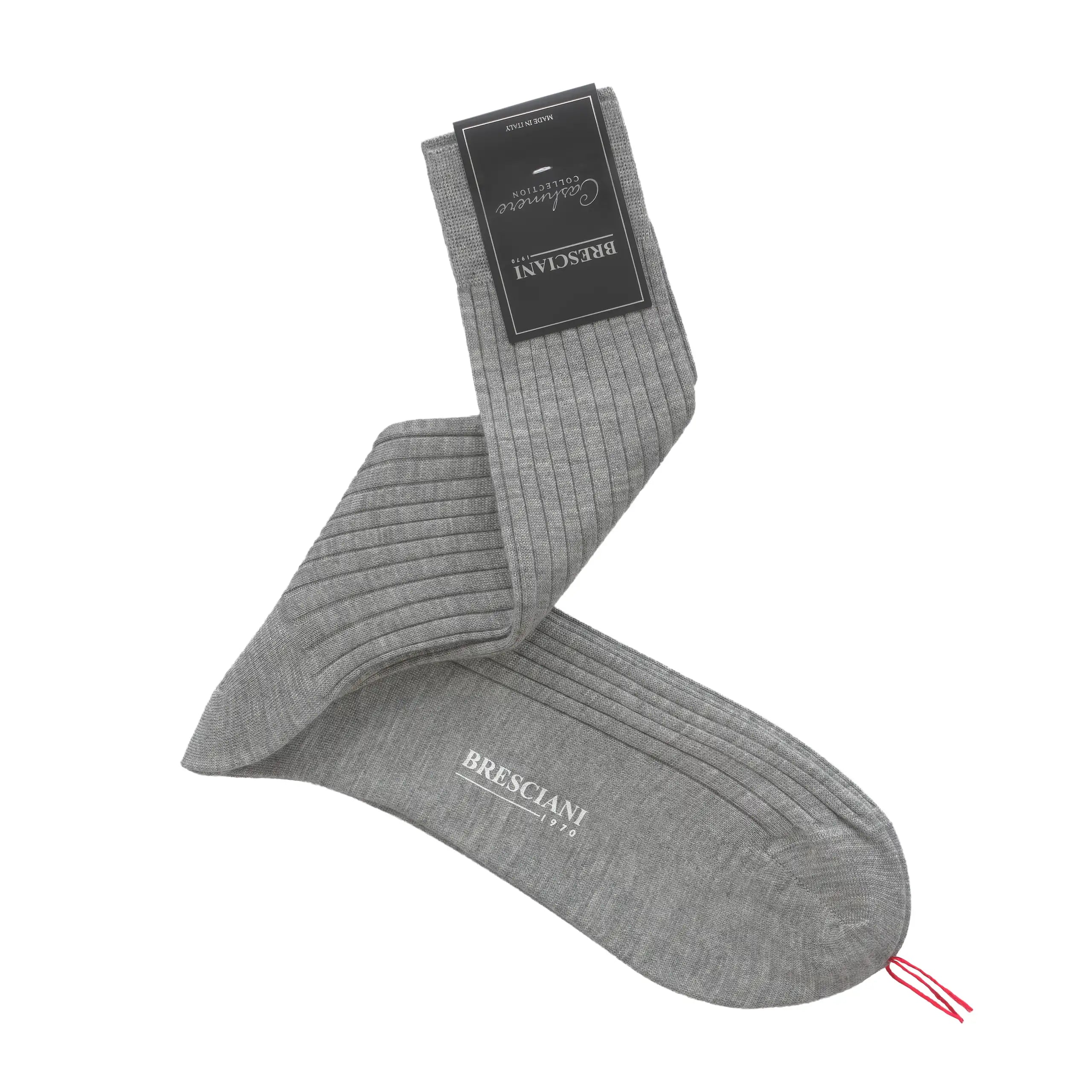 Ribbed Cashmere and Silk-Blend Socks in Grey