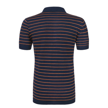 Striped Silk and Linen-Blend Polo Shirt in Blue and Orange